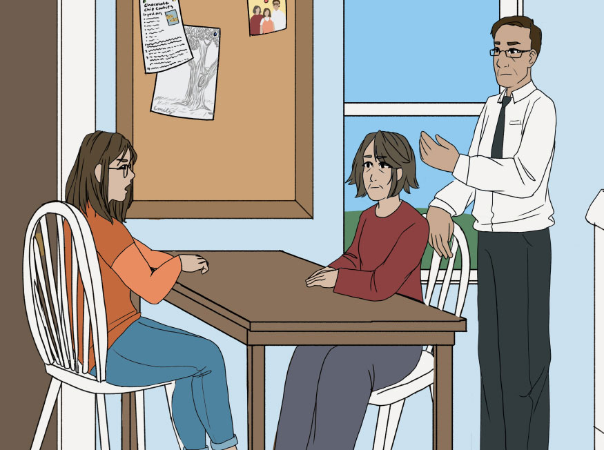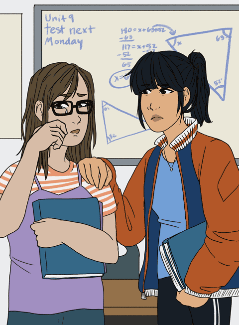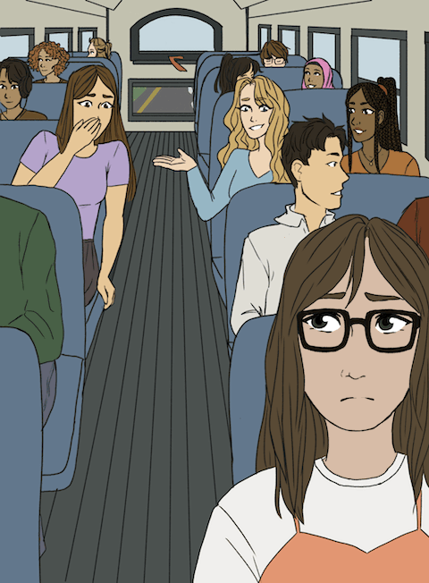 Emily sat back down. She thought about just answering, “Fine,” but really wanted to talk about how bothered she was by what had happened on the bus. So she told her mom about the group of girls and how they had looked directly at her when they talked about people who “don’t have a clue.” Then she described her lab group.