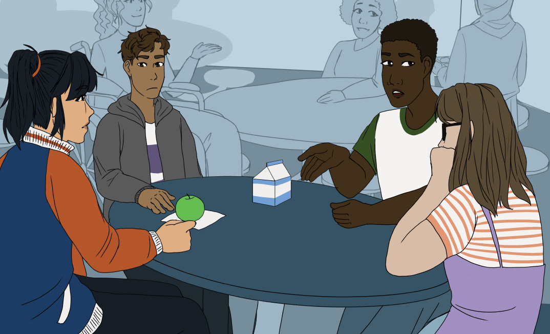 They settled down into their places. The lab assignment was on the table and they all read it in silence. They had to find what vitamins and minerals were in different kinds of foods. When it looked like they’d finished reading, Marcus was the first to speak up.